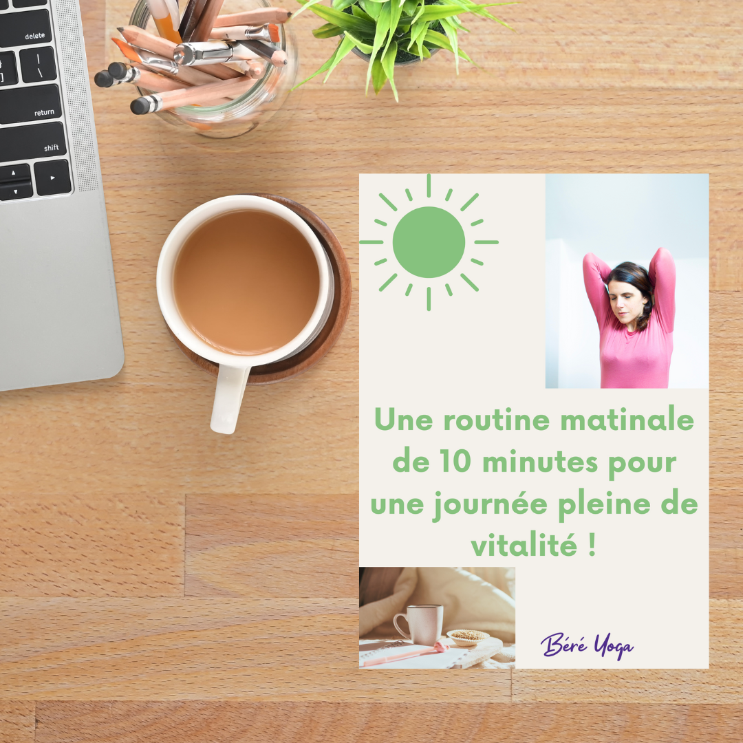 Un ebook gratuit avec ma routine expresse du matin, dont une vidéo de Yoga !Cette routine ne vous prendra que 10 minutes.